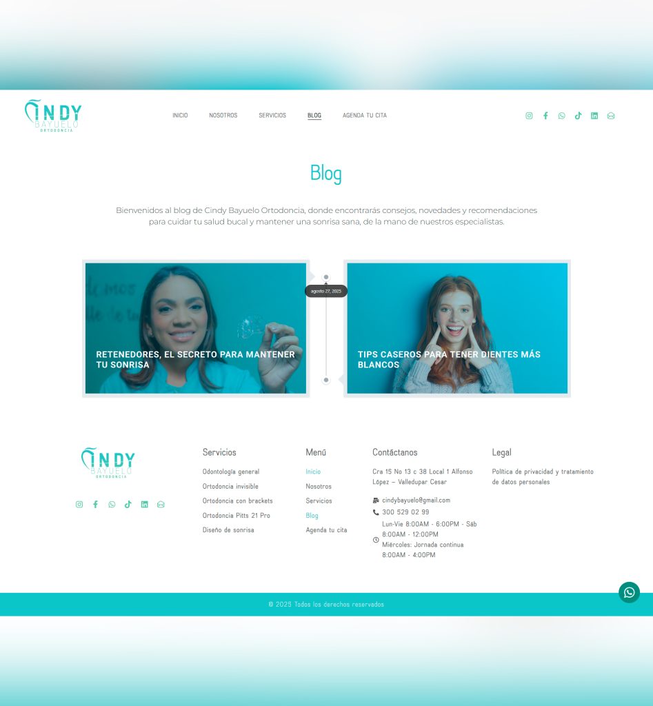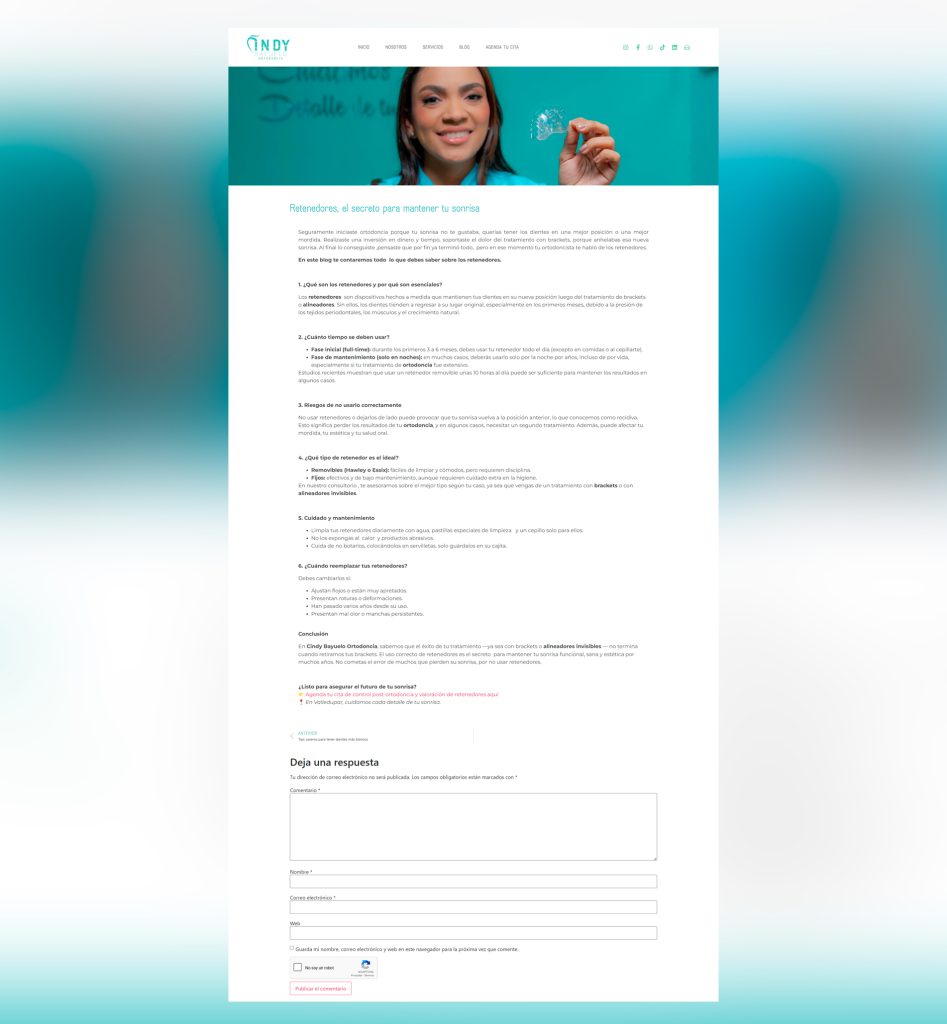 El reto consistió en diseñar un sitio web moderno y administrable para un centro de ortodoncia, con un home claro, un blog educativo y una sección de servicios atractiva. La meta fue transmitir confianza, profesionalismo y cercanía a los pacientes.
