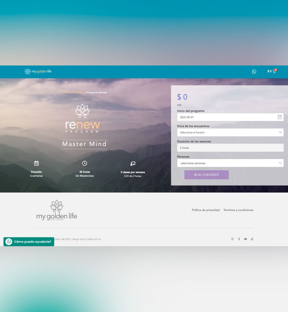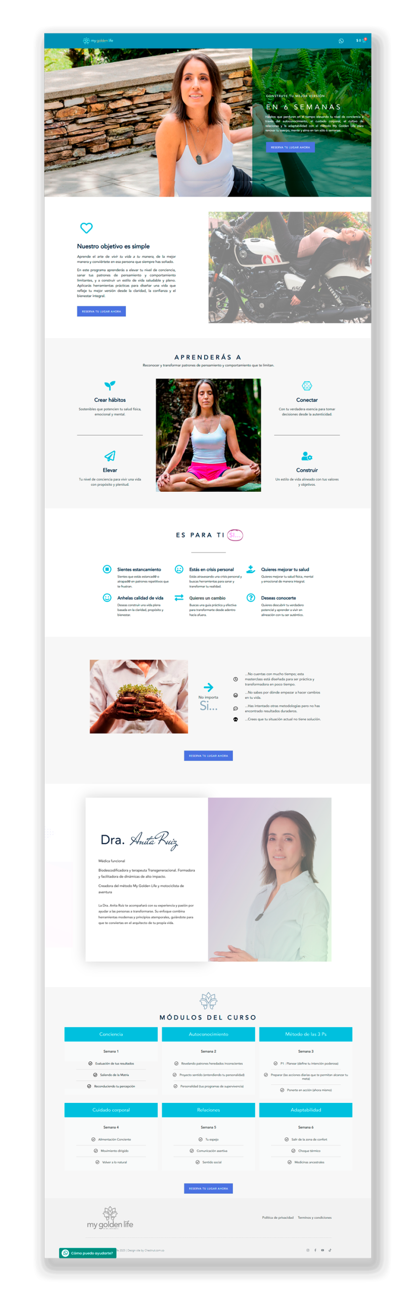 Creamos una landing page atractiva, con pasarela de pagos segura y un sistema de reservas fácil e intuitivo para cursos y retiros de superación personal